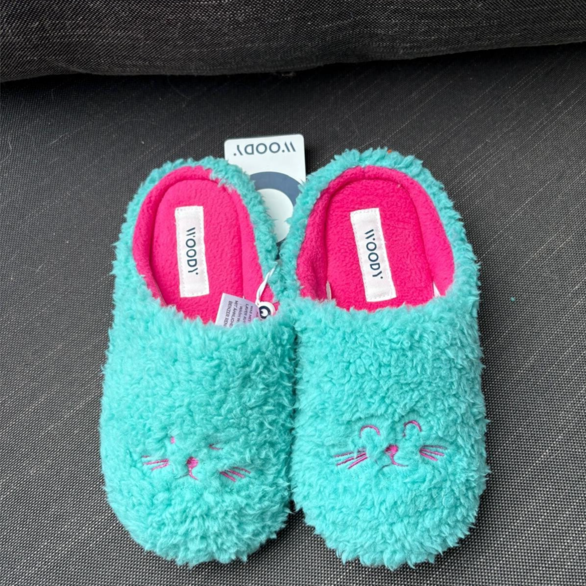 Woody Outlet pantoffels turkoois instappers poes